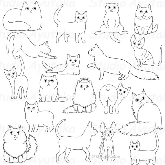 18 Doodle Cats Set Line Art Svg Png Etsy